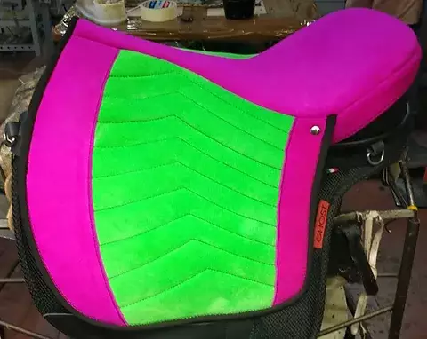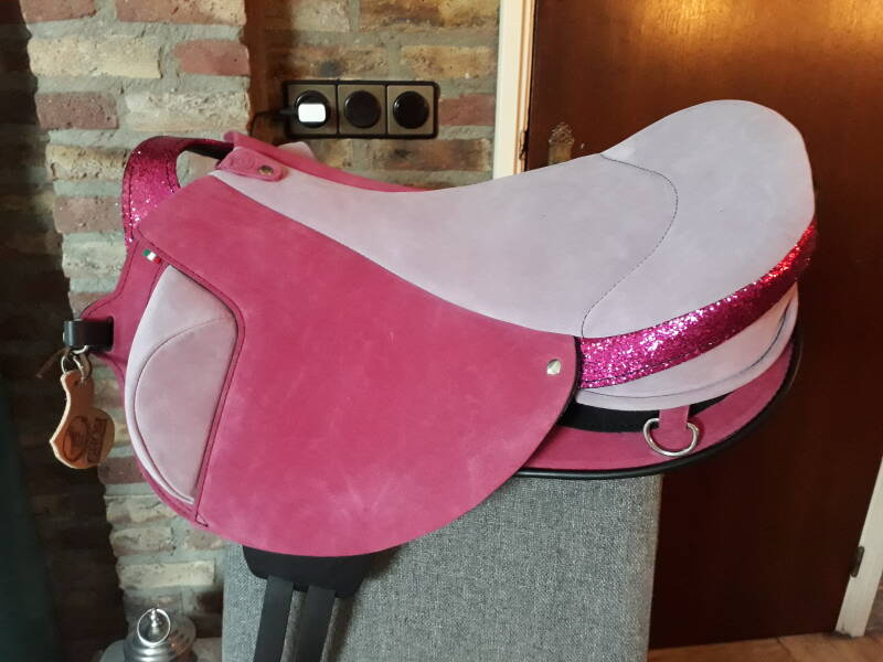 De zadels worden enkel op bestelling gemaakt en je kunt dus je eigen zadel samenstellen. Je kunt kiezen uit vele kleuren en materialen en dit ook combineren.
