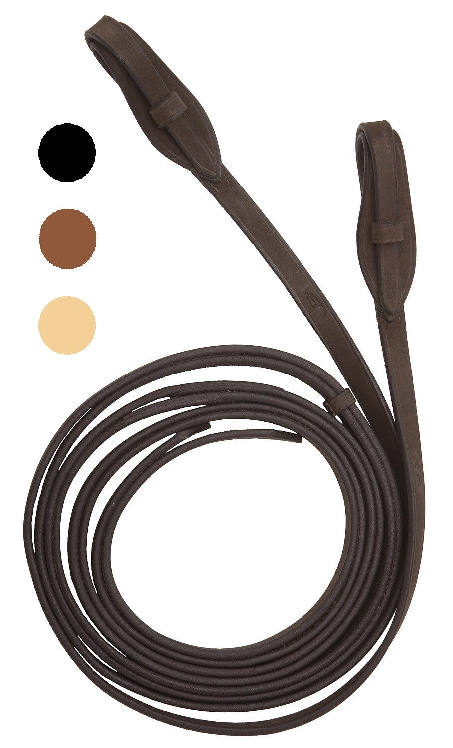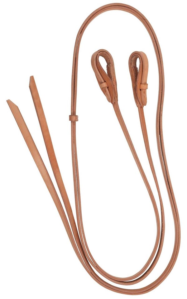 Open westernteugels van dik, stevig en soepel nubuckleder. Goede grip, middelzwaar en met lederen snelsluitingen.