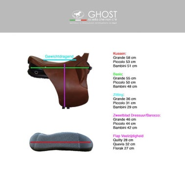 Ghost zadels zijn er in veel modellen en hebben veel opties, hieronder uitleg over de basis en meest gekozen opties. Neem vrijblijvend contact op voor meer informatie.